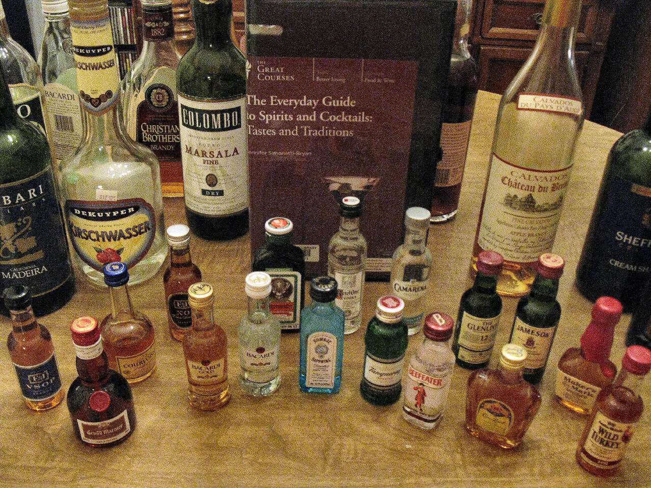 Despite the clinginess of the flavor, I wanted to continue my education. My husband and I went to a liquor store and bought a selection of the tiny bottles of liquor such as airlines use. I’m not sure if the clerk believed me when I said I was buying all those little bottles for research.