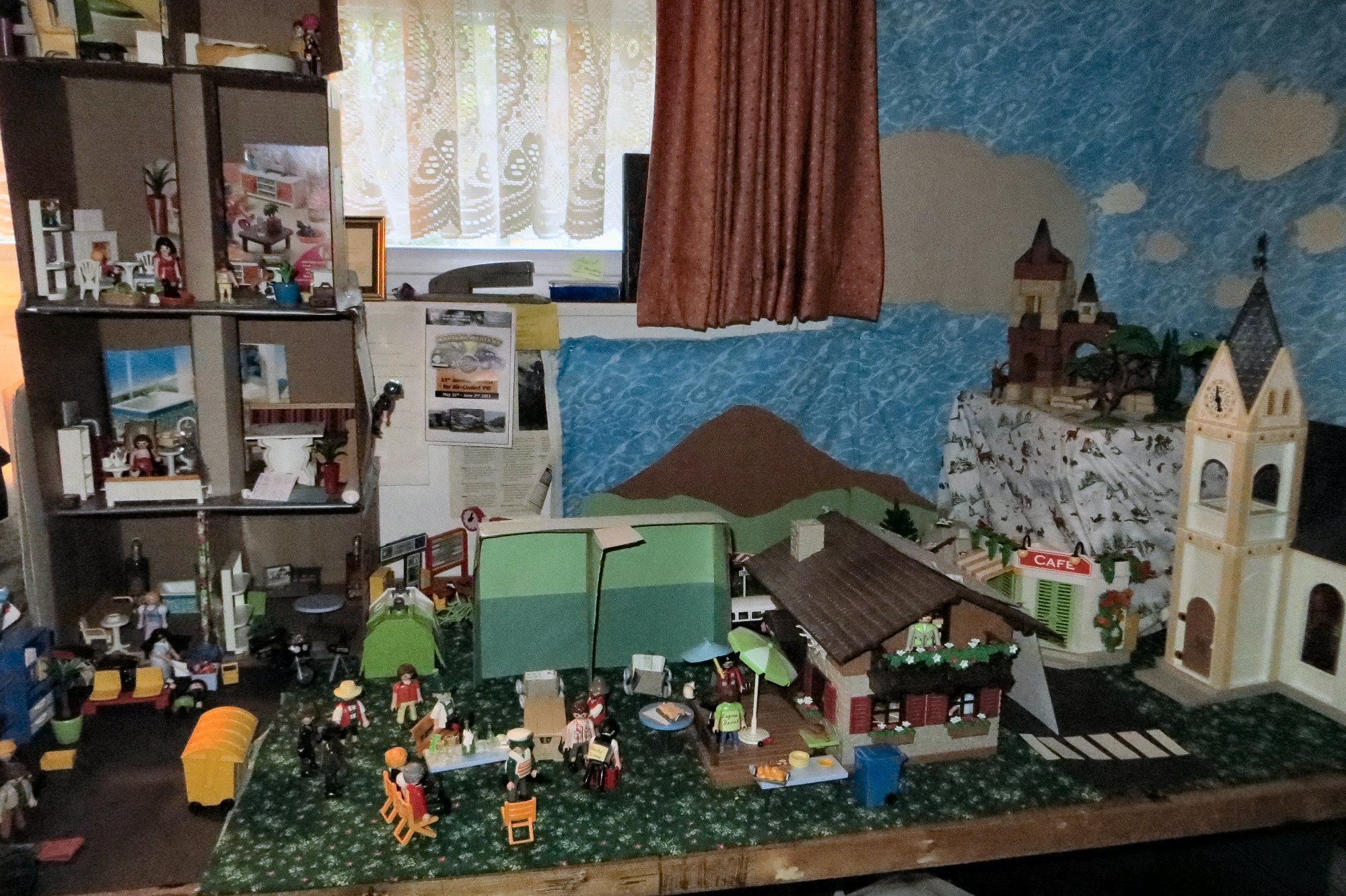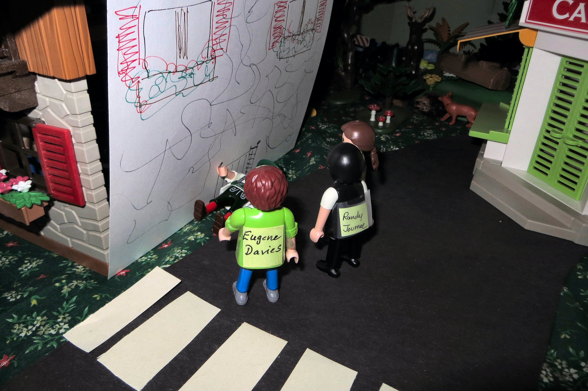 The back wall of the “office” is open (it’s a child’s play set), so I had to put in a paper wall to ever so slightly increase the realism.